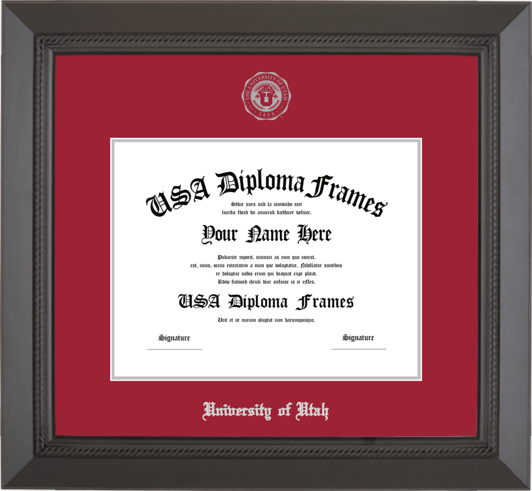 University of Utah Diploma Frame with Tassel – Black Rope – Crimson and Silver Mat