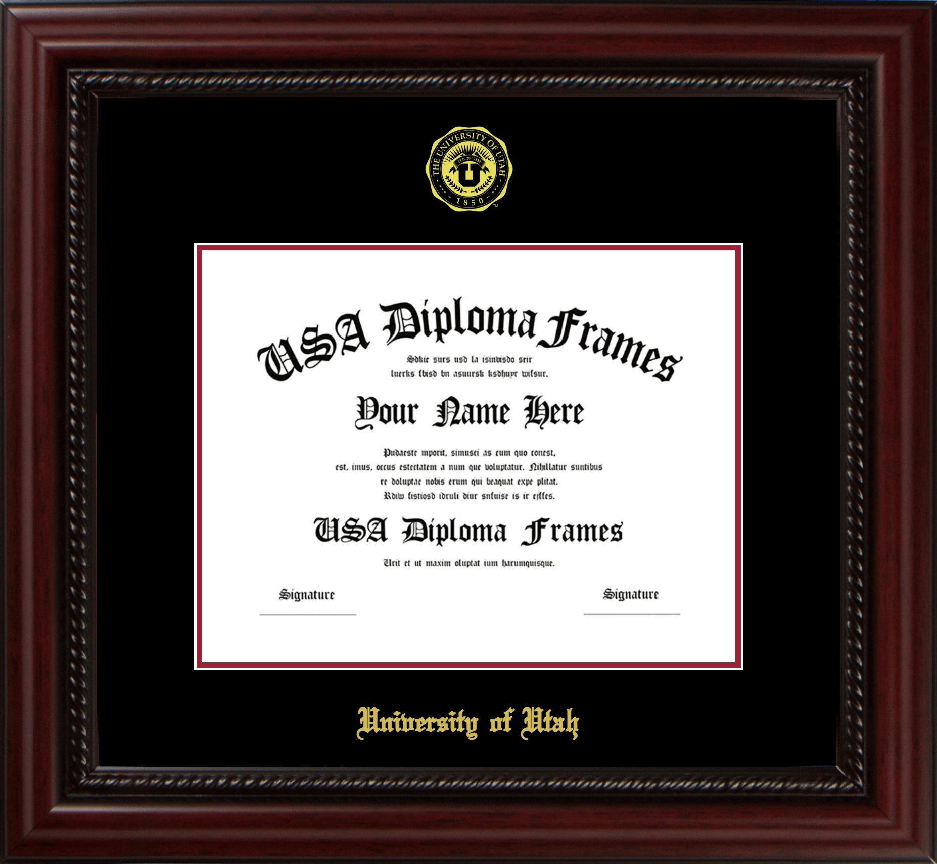 University of Utah Diploma Frame – Executive Cherry Rope – Black and Crimson Mat