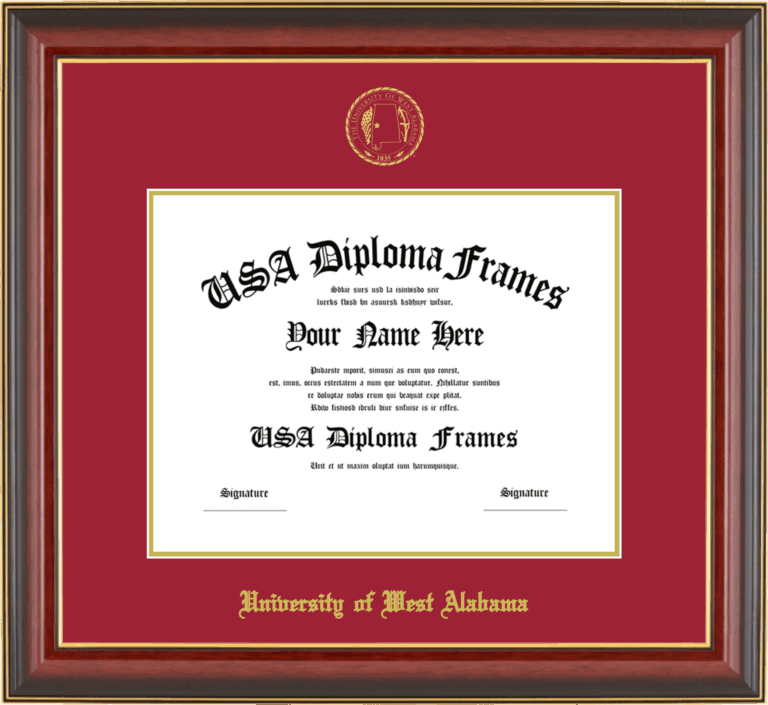 Want to explore more styles? Browse our full range of diploma frame layouts, or visit the University of West Alabama to view options available for your school. Looking for a fully personalized design? Try our custom Frame Builder and create a frame that’s uniquely yours.