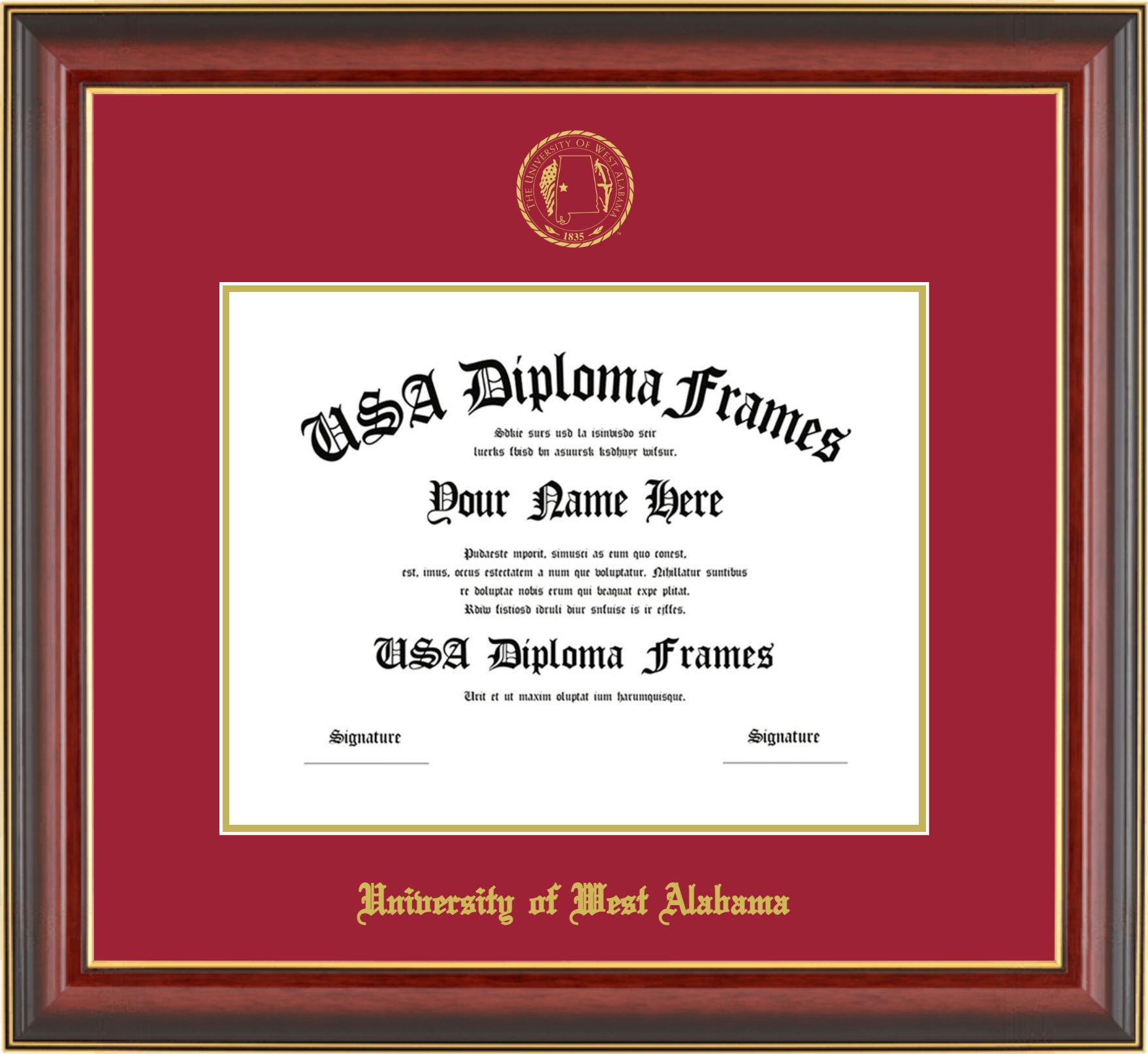University of West Alabama Diploma Frame – Cherry Mahogany Gold Trim Glossy – Crimson and Gold Mat