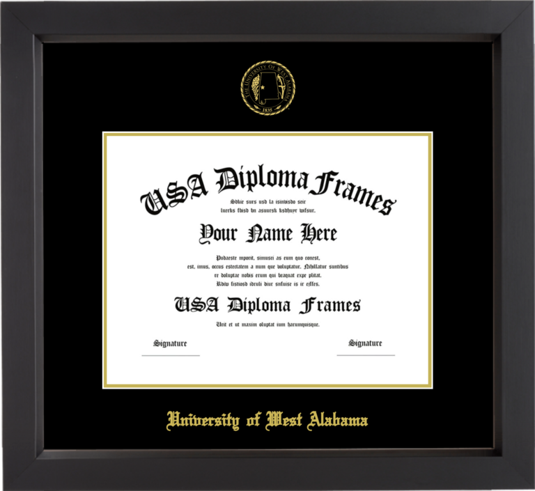 University of West Alabama Diploma Frame – Black Matte – Black and Gold Mat