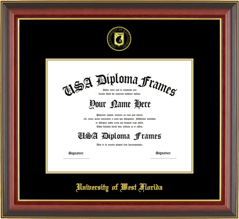 University of West Florida Diploma Frame – Cherry Mahogany Gold Trim Glossy – Black and Gold Mat