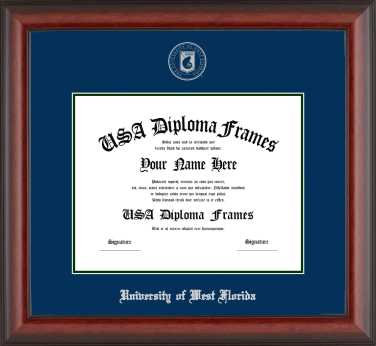 Want to explore more styles? Browse our full range of diploma frame layouts, or visit the University of West Florida to view options available for your school. Looking for a fully personalized design? Try our custom Frame Builder and create a frame that’s uniquely yours.