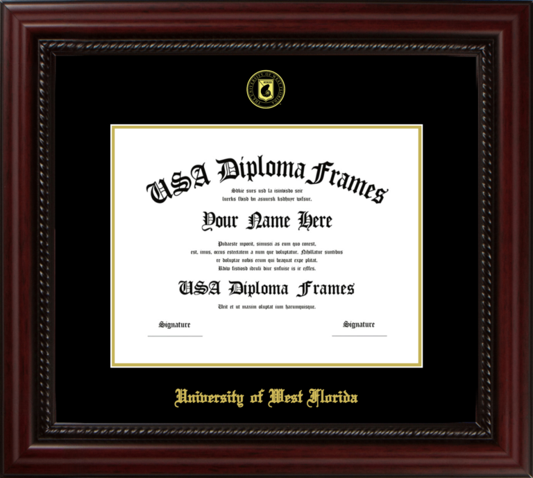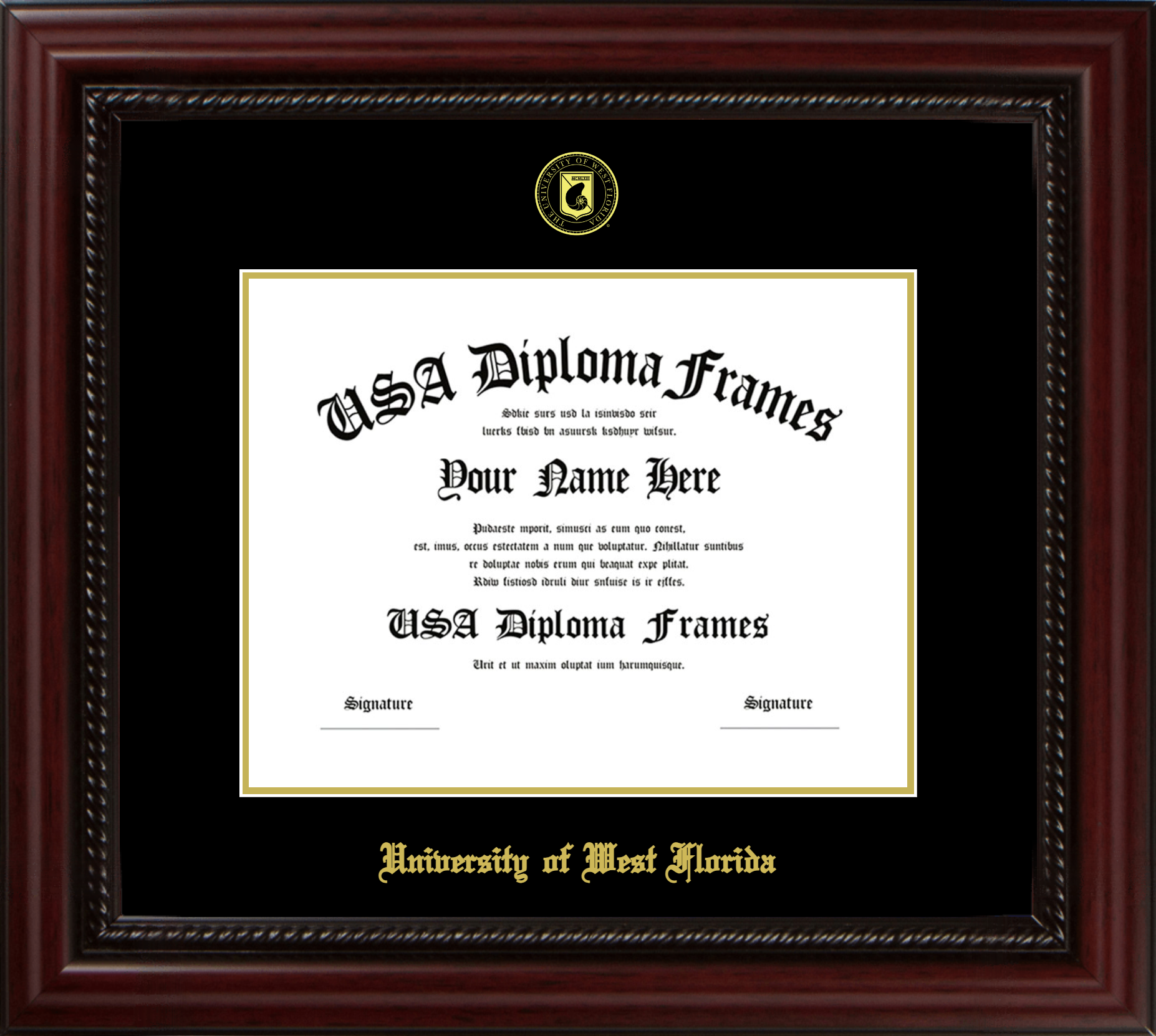 University of West Florida Diploma Frame – Executive Cherry Rope – Black and Gold Mat