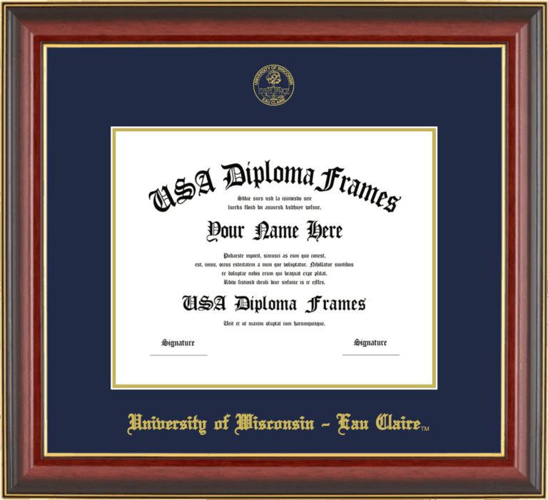 Want to explore more styles? Browse our full range of diploma frame layouts, or visit the University of Wisconsin - Eau Claire to view options available for your school. Looking for a fully personalized design? Try our custom Frame Builder and create a frame that’s uniquely yours.