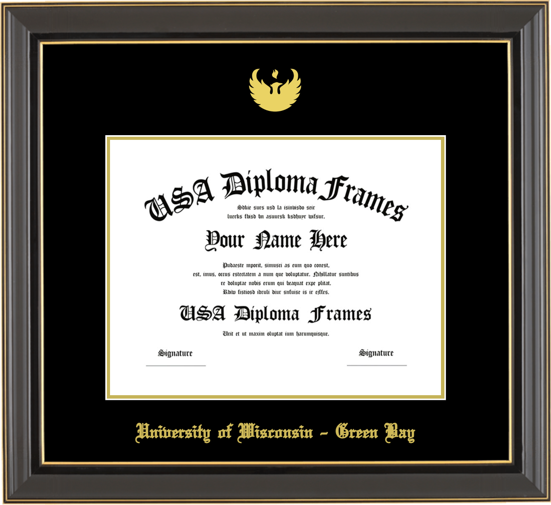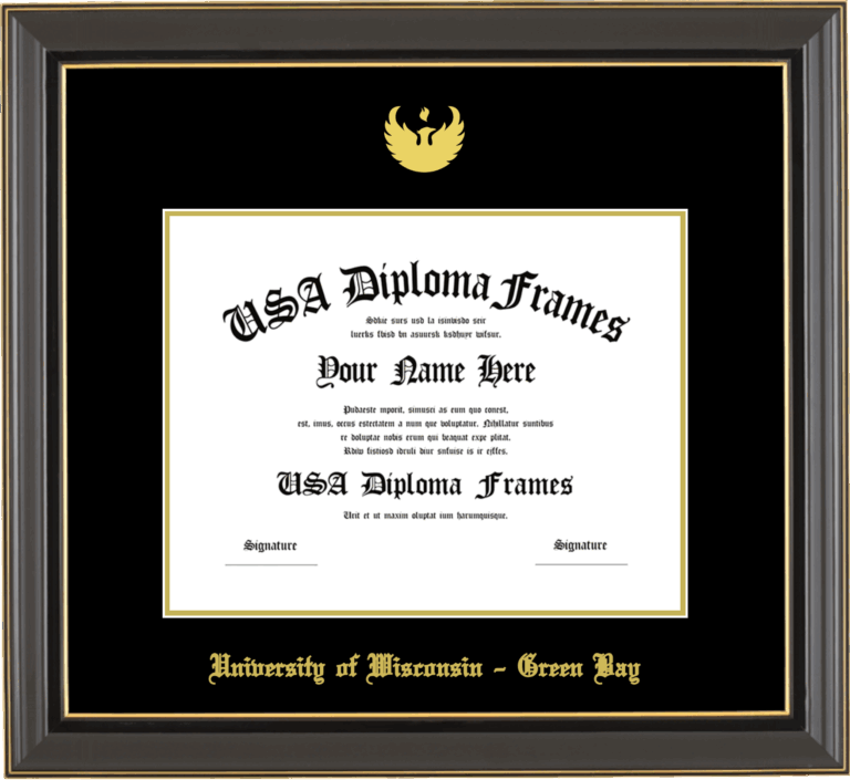 University of Wisconsin – Green Bay Diploma Frame – Black Gold Trim Glossy – Black and Gold Mat