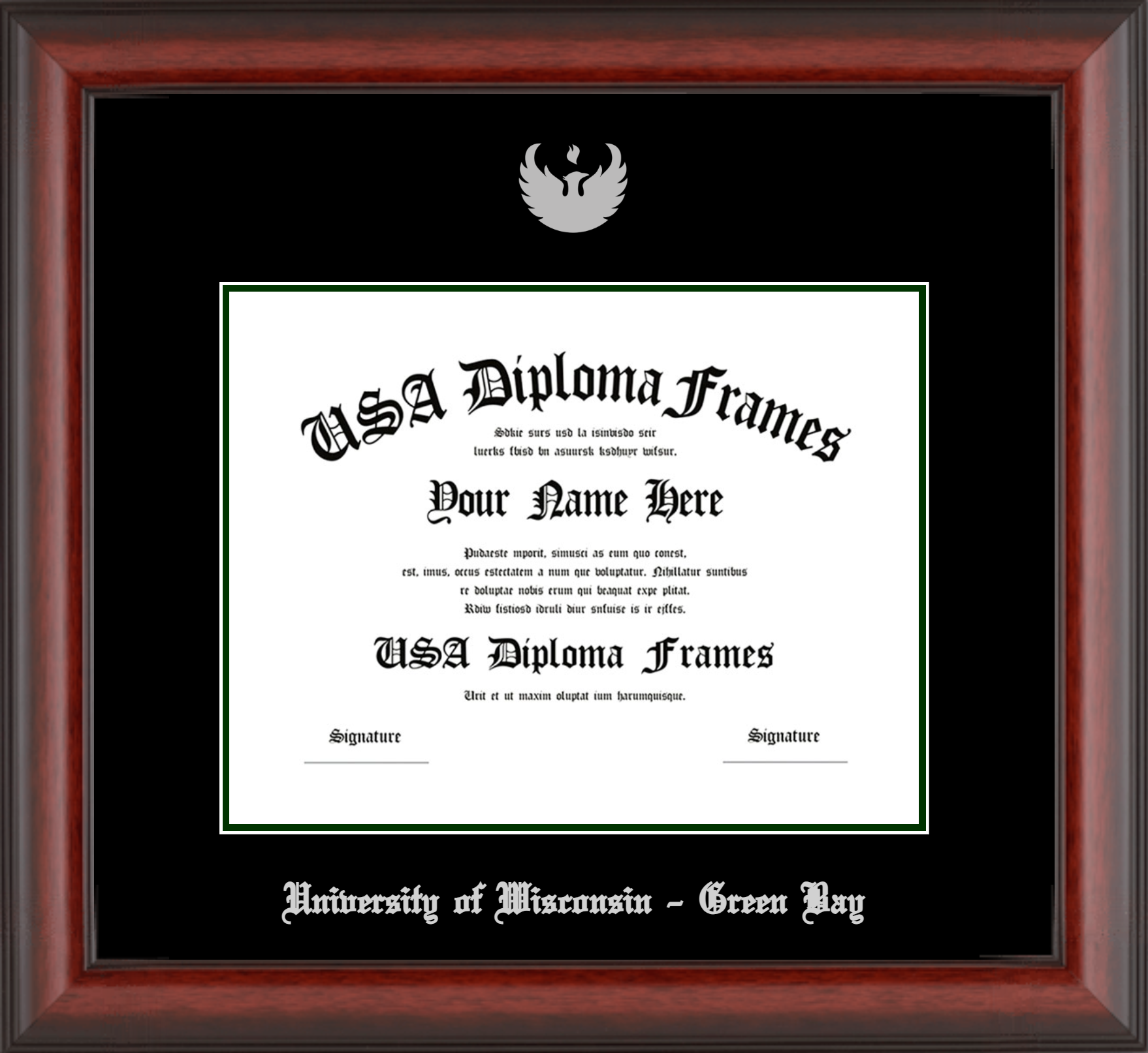 Want to explore more styles? Browse our full range of diploma frame layouts, or visit the University of Wisconsin - Green Bay to view options available for your school. Looking for a fully personalized design? Try our custom Frame Builder and create a frame that’s uniquely yours.