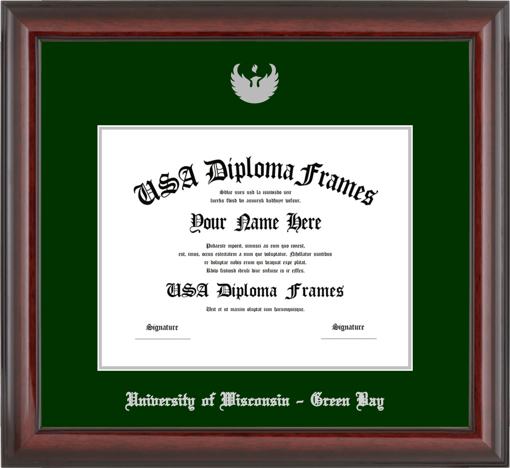 Want to explore more styles? Browse our full range of diploma frame layouts, or visit the University of Wisconsin - Green Bay to view options available for your school. Looking for a fully personalized design? Try our custom Frame Builder and create a frame that’s uniquely yours.
