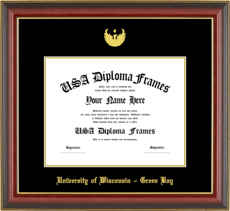 Want to explore more styles? Browse our full range of diploma frame layouts, or visit the University of Wisconsin - Green Bay to view options available for your school. Looking for a fully personalized design? Try our custom Frame Builder and create a frame that’s uniquely yours.