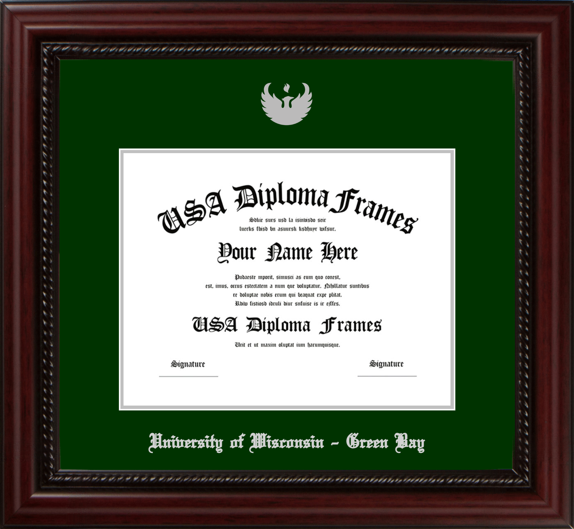Want to explore more styles? Browse our full range of diploma frame layouts, or visit the University of Wisconsin - Green Bay to view options available for your school. Looking for a fully personalized design? Try our custom Frame Builder and create a frame that’s uniquely yours.