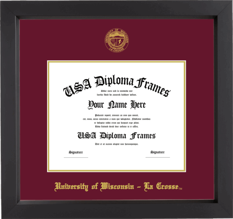 Want to explore more styles? Browse our full range of diploma frame layouts, or visit the University of Wisconsin - La Crosse to view options available for your school. Looking for a fully personalized design? Try our custom Frame Builder and create a frame that’s uniquely yours.