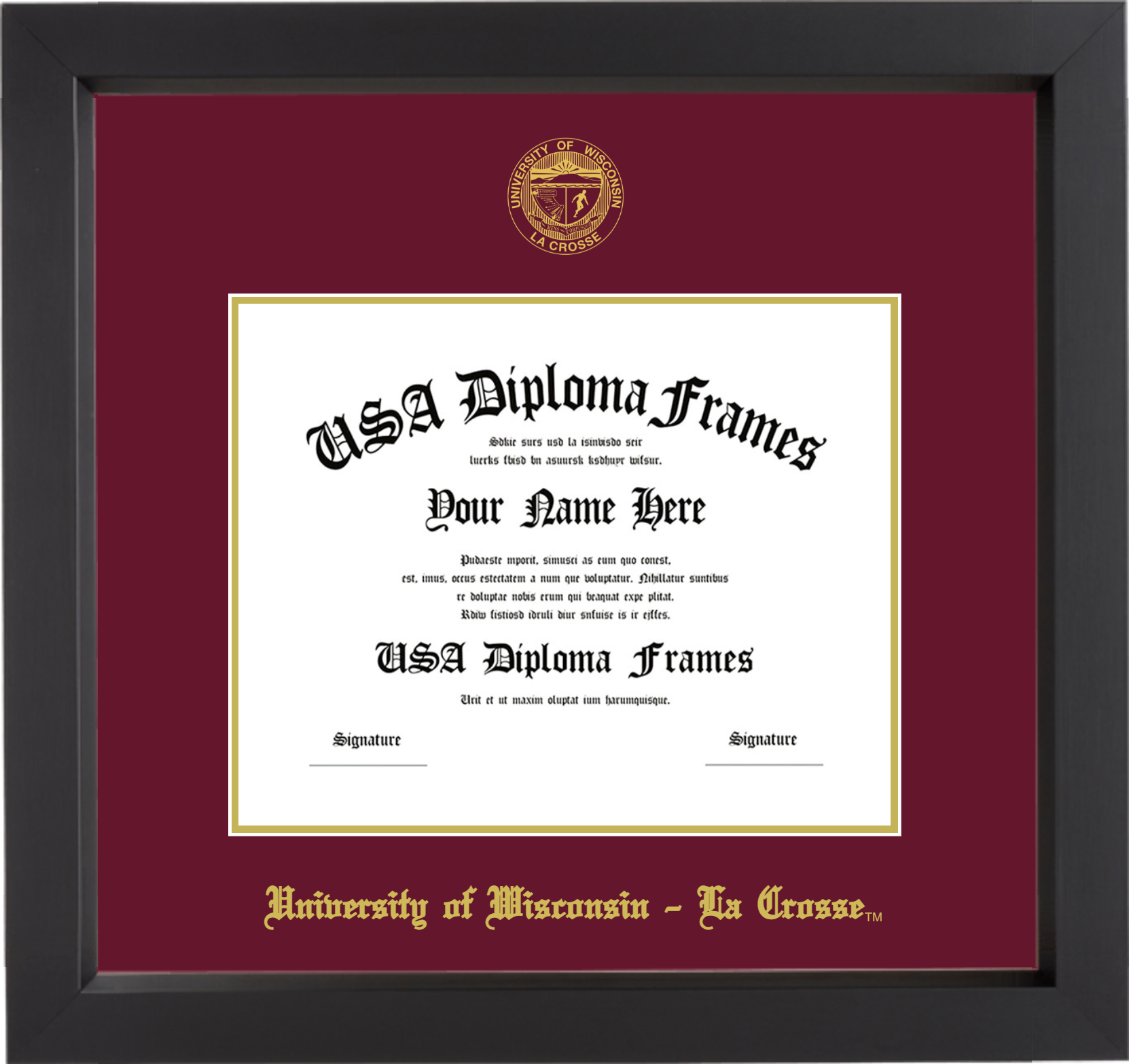 University of Wisconsin – La Crosse – Single Horizontal Document ( Diploma ) – Black Matte – Maroon Mat – Gold Accent Mat – With Seal(University Seal Gold) – With Gold Embossing (University of Wisconsin – La Crosse)