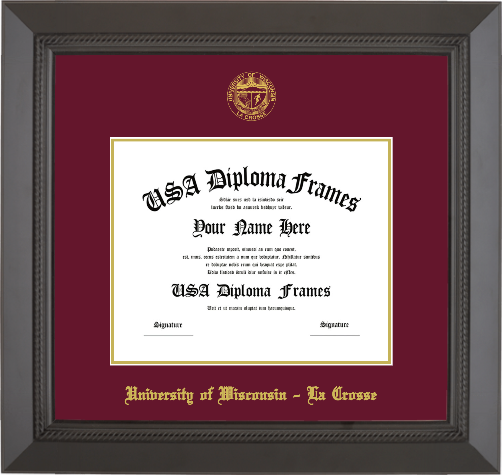 Want to explore more styles? Browse our full range of diploma frame layouts, or visit the University of Wisconsin - La Crosse to view options available for your school. Looking for a fully personalized design? Try our custom Frame Builder and create a frame that’s uniquely yours.