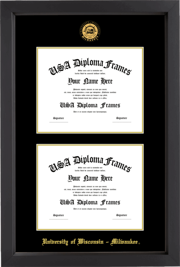 University of Wisconsin – Milwaukee Double Diploma Frame – Double Document – Black Matte – Black and Gold Mat