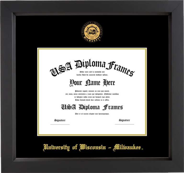 University of Wisconsin – Milwaukee Diploma Frame – Black Matte – Black and Gold Mat
