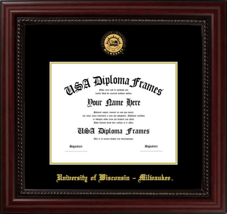 University of Wisconsin – Milwaukee Diploma Frame – Executive Cherry Rope – Black and Gold Mat