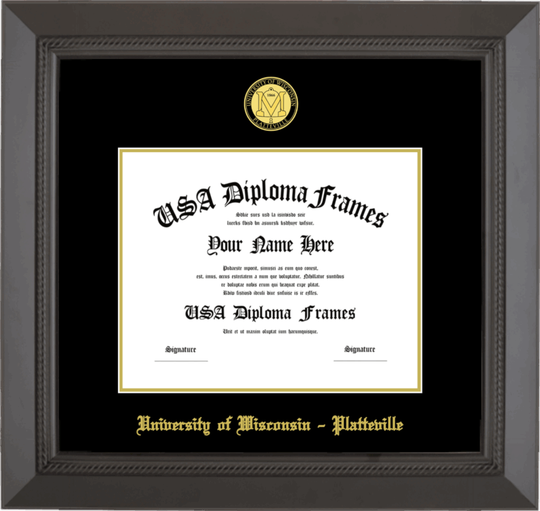 University of Wisconsin – Platteville Diploma Frame – Black Rope – Black and Gold Mat