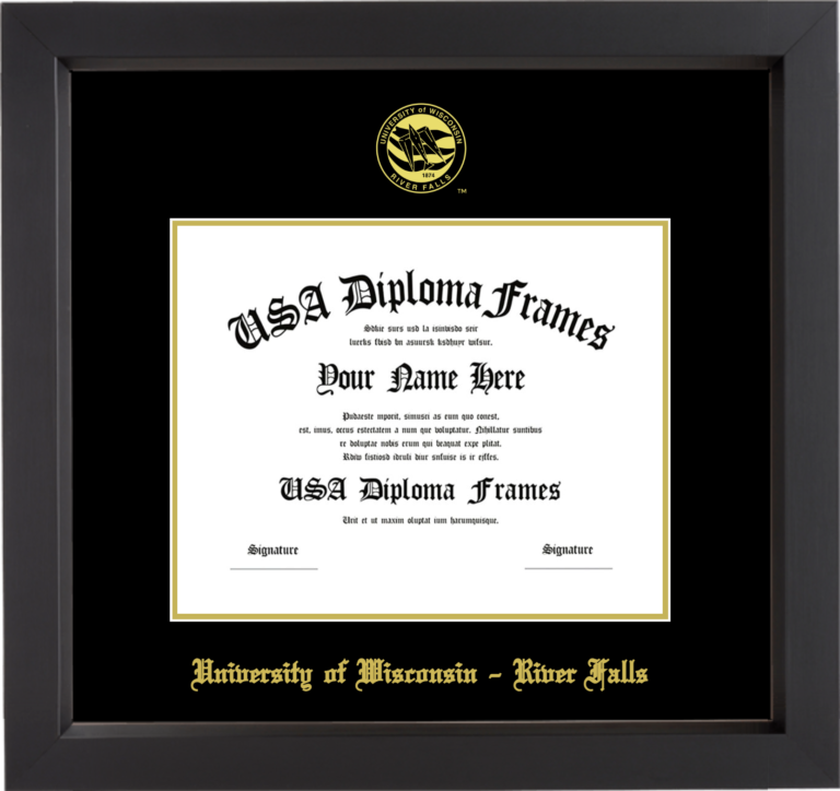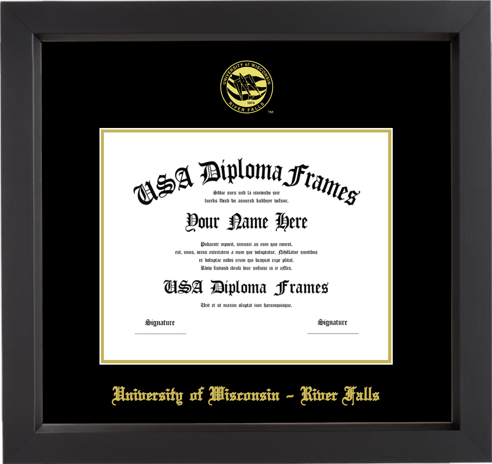 University of Wisconsin – River Falls Diploma Frame – Black Matte – Black and Gold Mat