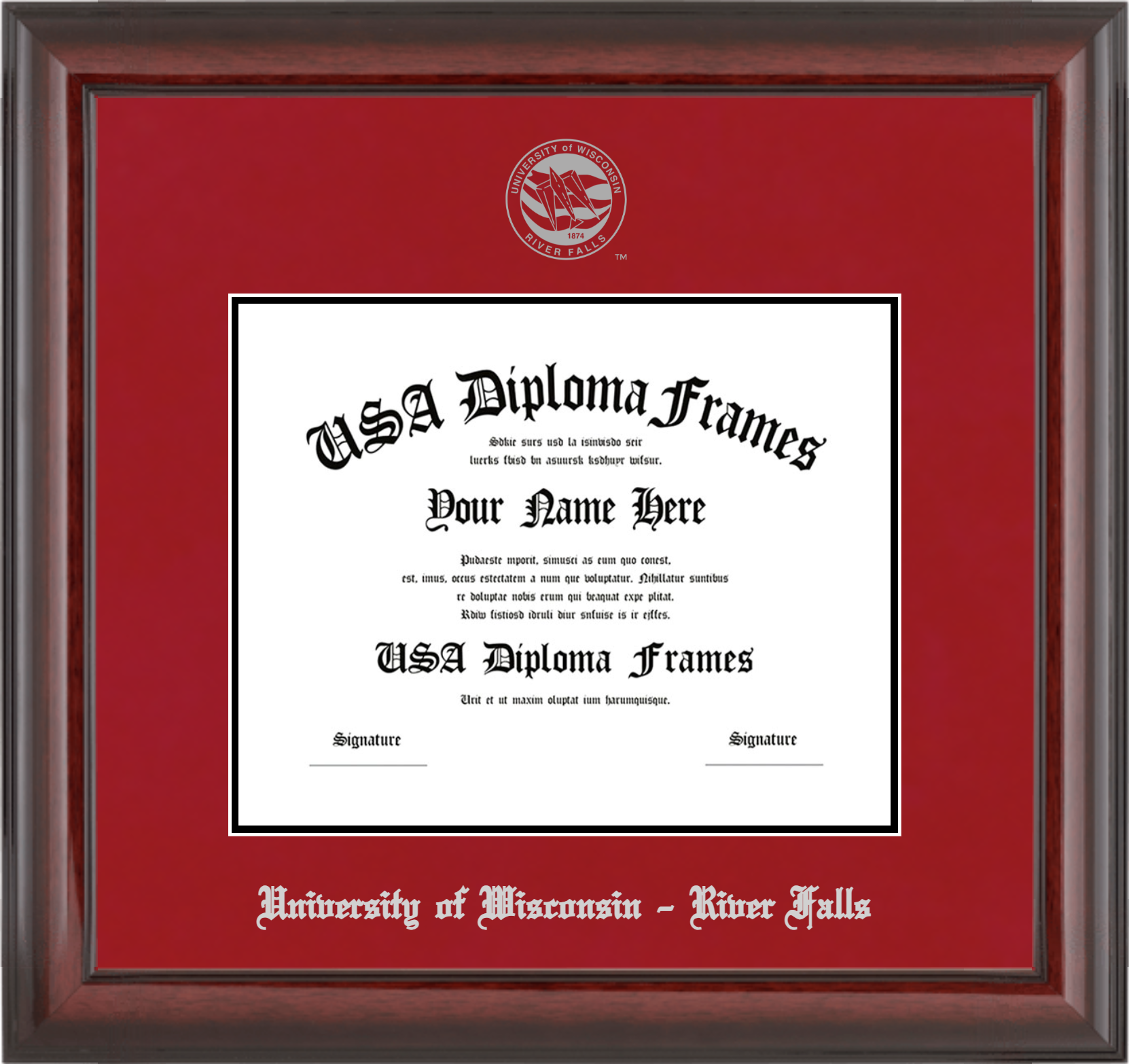 University of Wisconsin – River Falls – Single Horizontal Document ( Diploma ) – Cherry Mahogany Glossy – Crimson Mat – Black Accent Mat – With Seal(University Seal Silver) – With Silver Embossing (University of Wisconsin – River Falls)