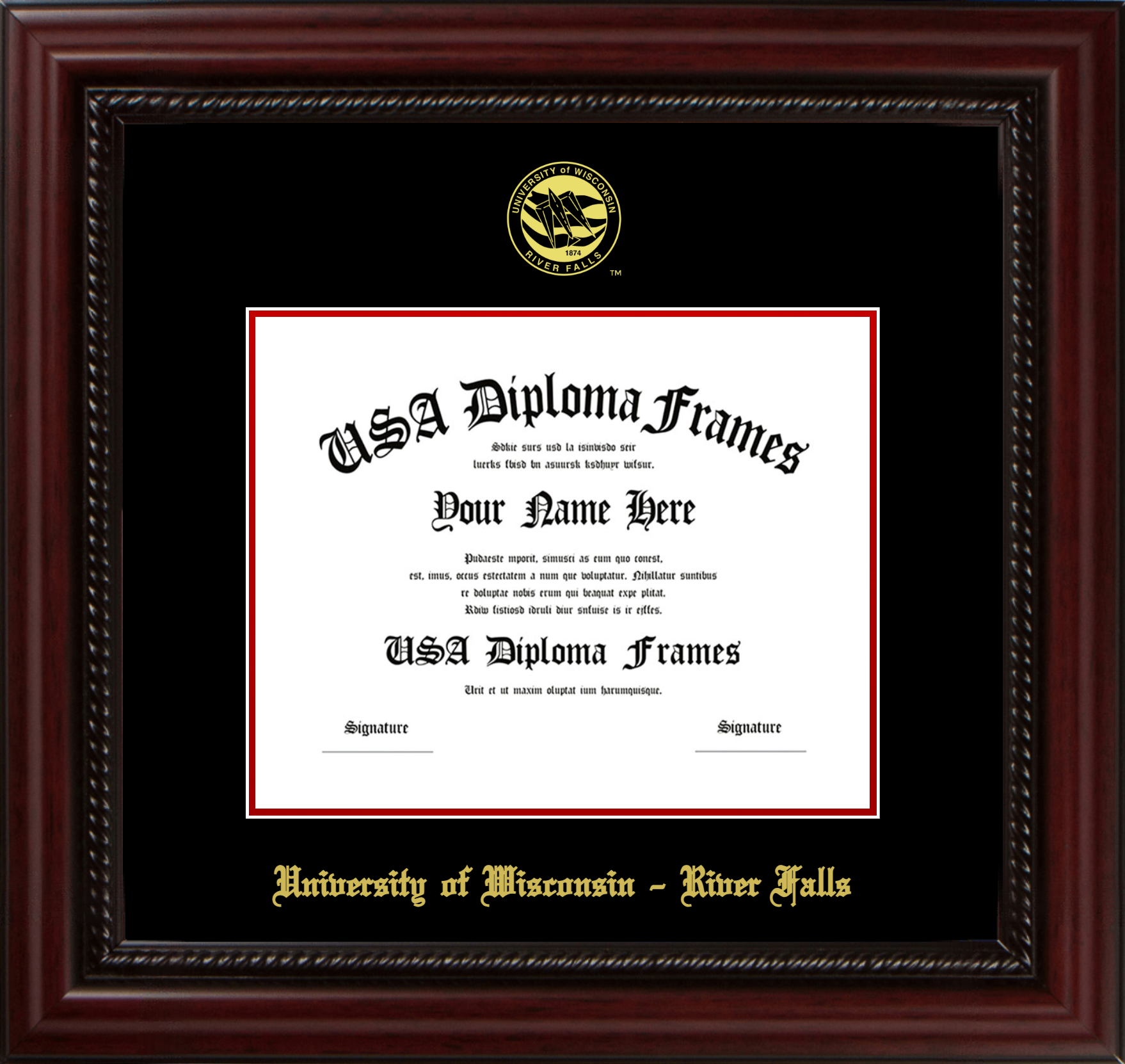 Want to explore more styles? Browse our full range of diploma frame layouts, or visit the University of Wisconsin - River Falls to view options available for your school. Looking for a fully personalized design? Try our custom Frame Builder and create a frame that’s uniquely yours.