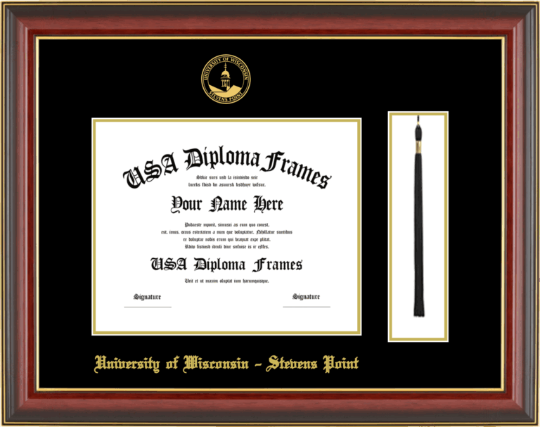 Want to explore more styles? Browse our full range of diploma frame layouts, or visit the University of Wisconsin - Stevens Point to view options available for your school. Looking for a fully personalized design? Try our custom Frame Builder and create a frame that’s uniquely yours.