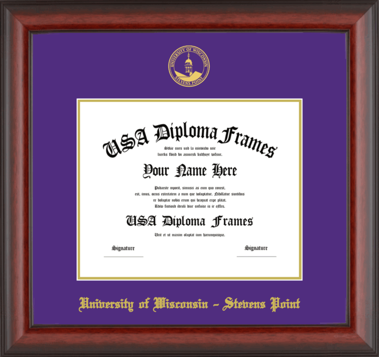 Want to explore more styles? Browse our full range of diploma frame layouts, or visit the University of Wisconsin - Stevens Point to view options available for your school. Looking for a fully personalized design? Try our custom Frame Builder and create a frame that’s uniquely yours.