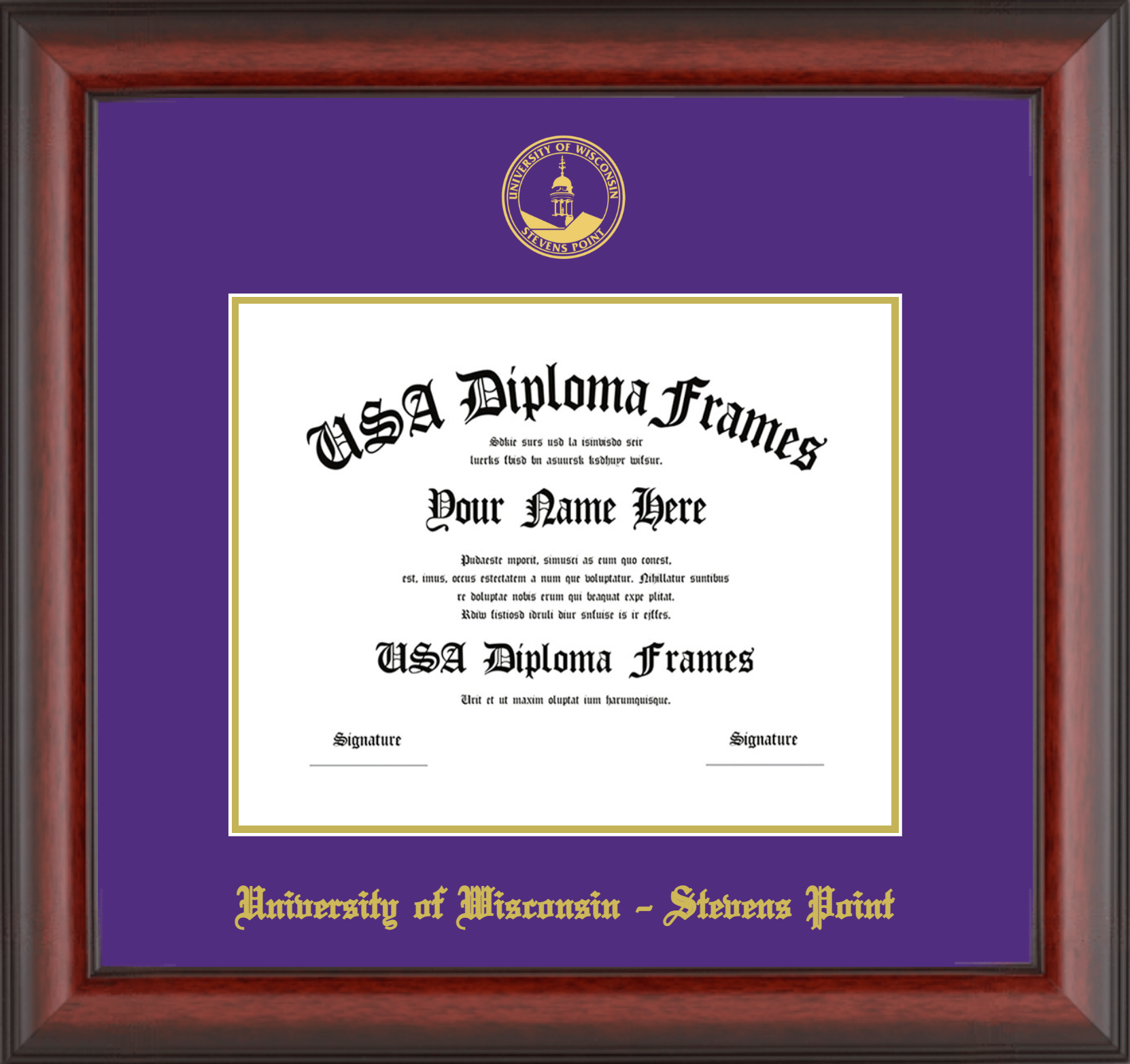 University of Wisconsin – Stevens Point – Single Horizontal Document ( Diploma ) – Cherry Mahogany Matte – Purple Mat – Gold Accent Mat – With Seal(University Seal Gold) – With Gold Embossing (University of Wisconsin – Stevens Point)