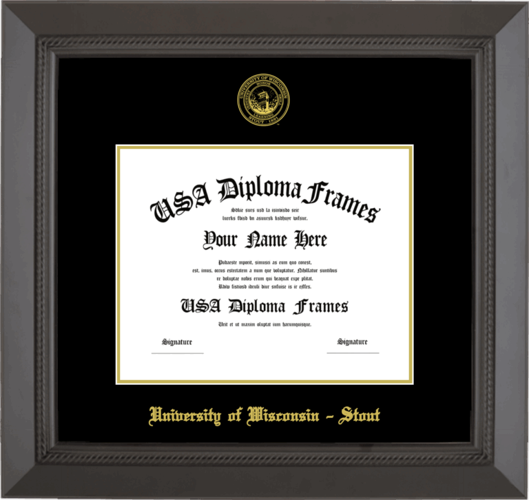 Want to explore more styles? Browse our full range of diploma frame layouts, or visit the University of Wisconsin - Stout to view options available for your school. Looking for a fully personalized design? Try our custom Frame Builder and create a frame that’s uniquely yours.