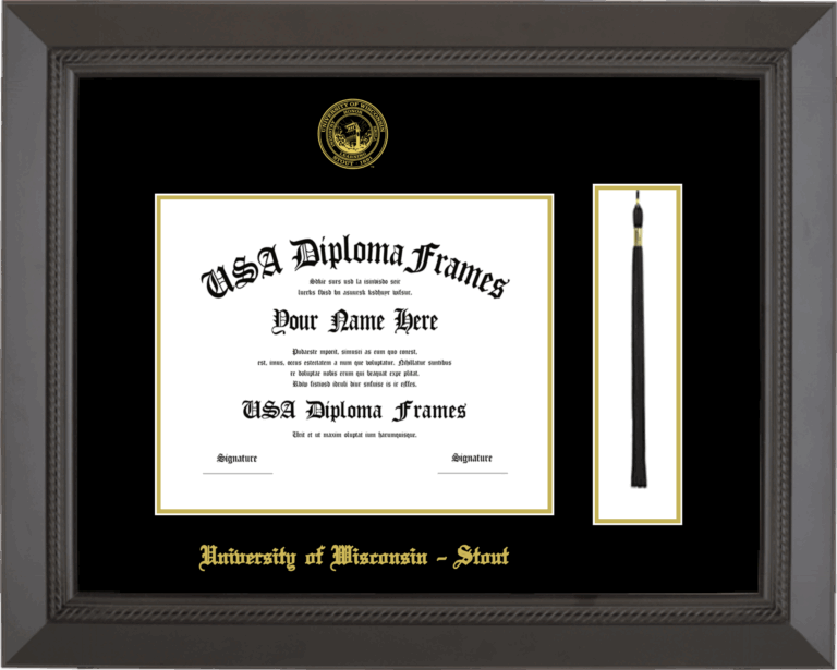 Want to explore more styles? Browse our full range of diploma frame layouts, or visit the University of Wisconsin - Stout to view options available for your school. Looking for a fully personalized design? Try our custom Frame Builder and create a frame that’s uniquely yours.