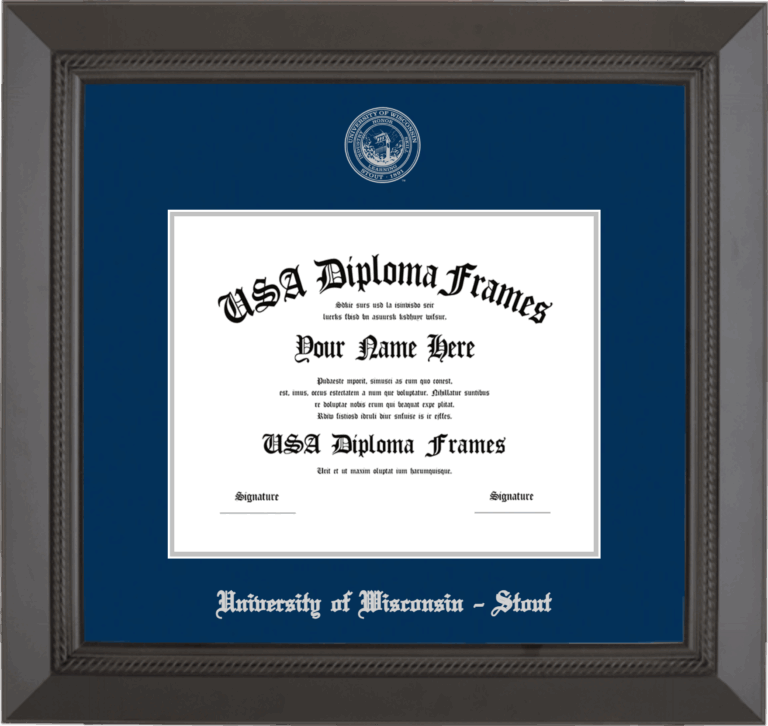 Want to explore more styles? Browse our full range of diploma frame layouts, or visit the University of Wisconsin - Stout to view options available for your school. Looking for a fully personalized design? Try our custom Frame Builder and create a frame that’s uniquely yours.