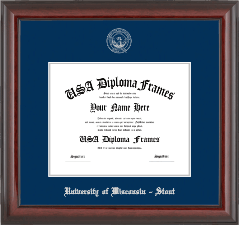 Want to explore more styles? Browse our full range of diploma frame layouts, or visit the University of Wisconsin - Stout to view options available for your school. Looking for a fully personalized design? Try our custom Frame Builder and create a frame that’s uniquely yours.