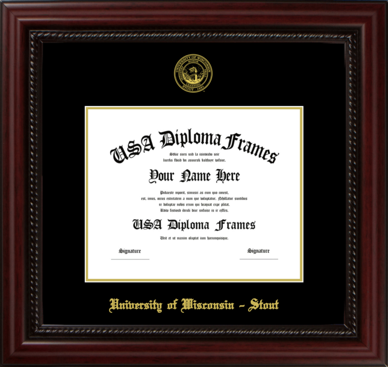 Want to explore more styles? Browse our full range of diploma frame layouts, or visit the University of Wisconsin - Stout to view options available for your school. Looking for a fully personalized design? Try our custom Frame Builder and create a frame that’s uniquely yours.
