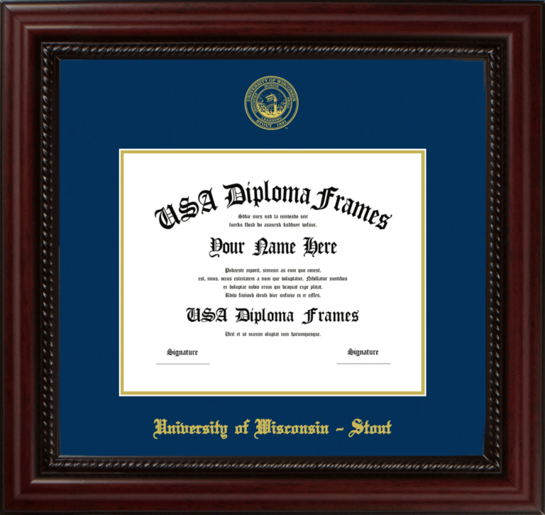 Want to explore more styles? Browse our full range of diploma frame layouts, or visit the University of Wisconsin - Stout to view options available for your school. Looking for a fully personalized design? Try our custom Frame Builder and create a frame that’s uniquely yours.