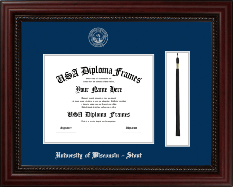 Want to explore more styles? Browse our full range of diploma frame layouts, or visit the University of Wisconsin - Stout to view options available for your school. Looking for a fully personalized design? Try our custom Frame Builder and create a frame that’s uniquely yours.