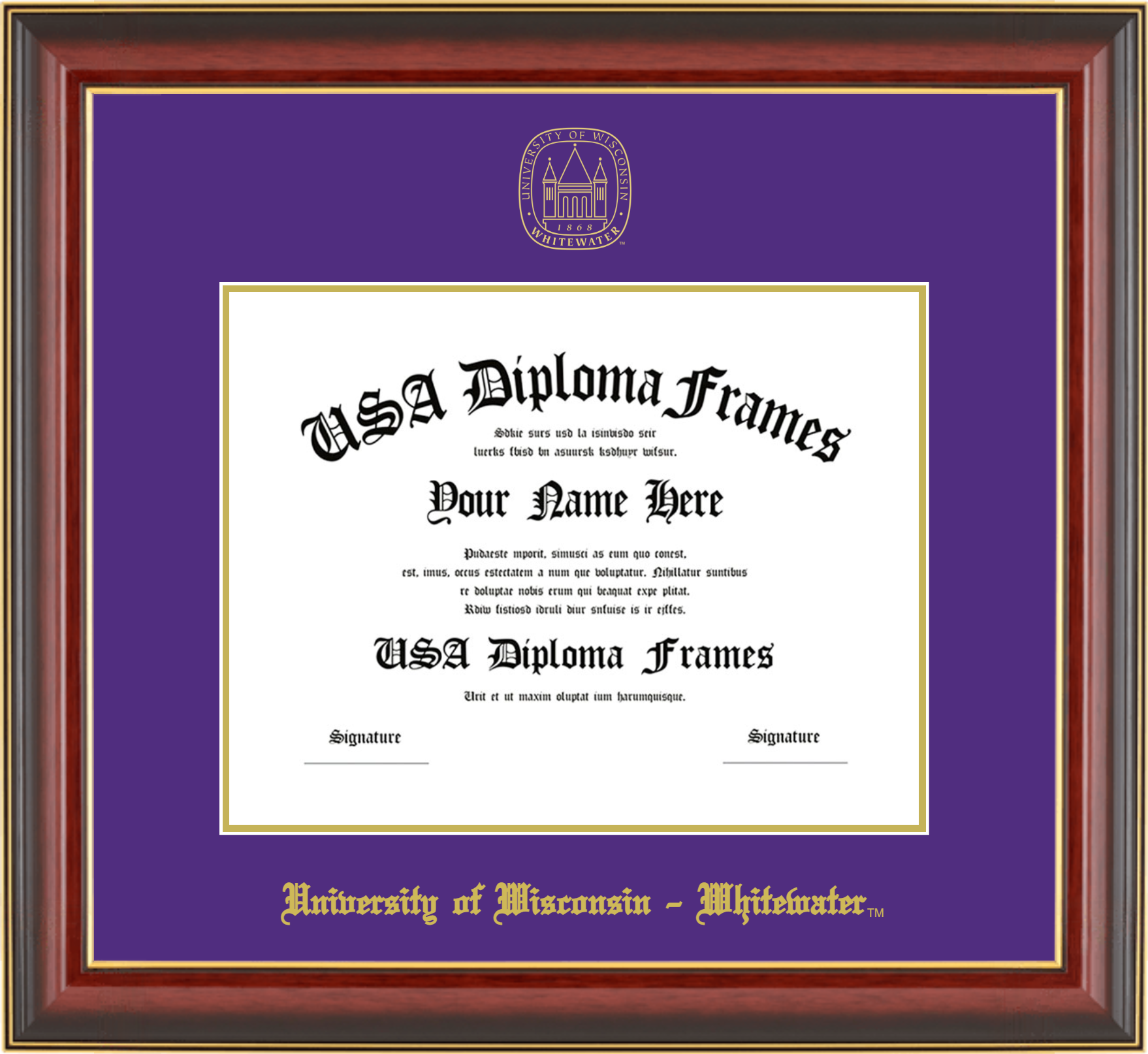University of Wisconsin – Whitewater – Single Horizontal Document ( Diploma ) – Cherry Mahogany Gold Trim Glossy – Purple Mat – Gold Accent Mat – With Seal(University Seal Gold) – With Gold Embossing (University of Wisconsin – Whitewater)
