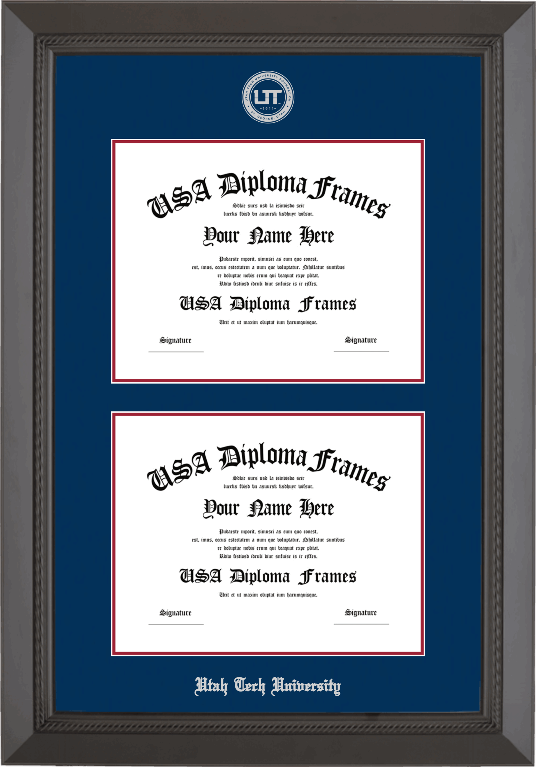 Utah Tech University Double Diploma Frame – Double Document – Black Rope – Navy and Crimson Mat