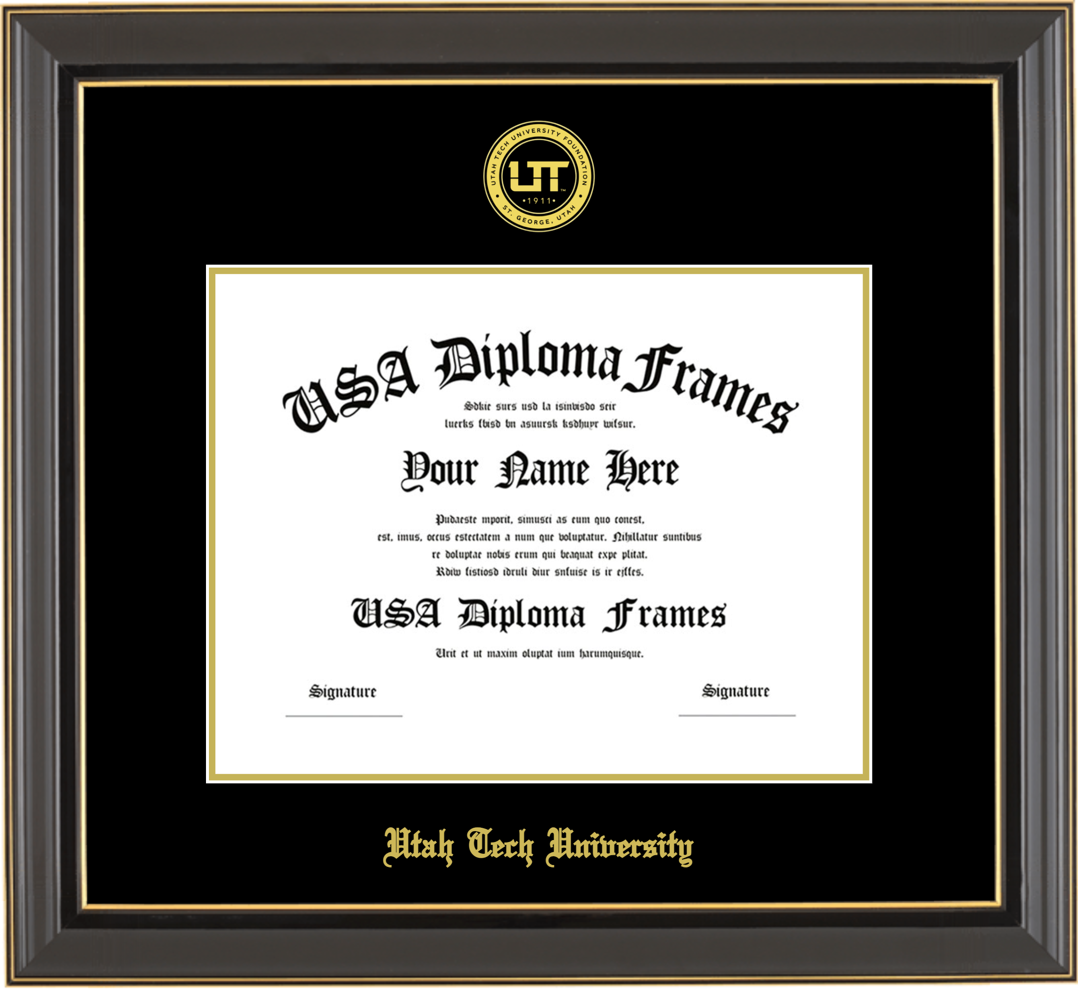 Utah Tech University Diploma Frame – Black Gold Trim Glossy – Black and Gold Mat