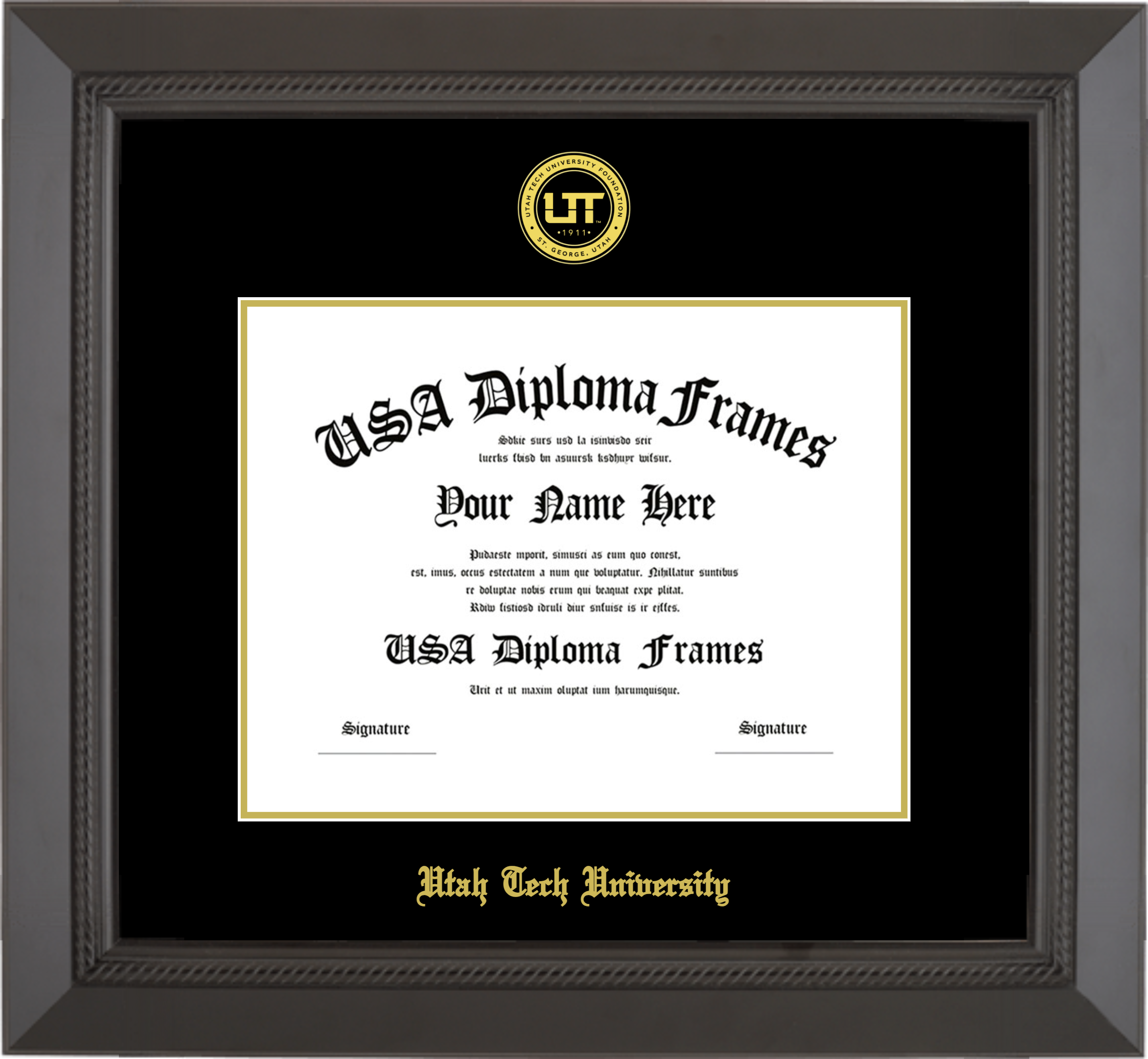 Utah Tech University Diploma Frame – Black Rope – Black and Gold Mat