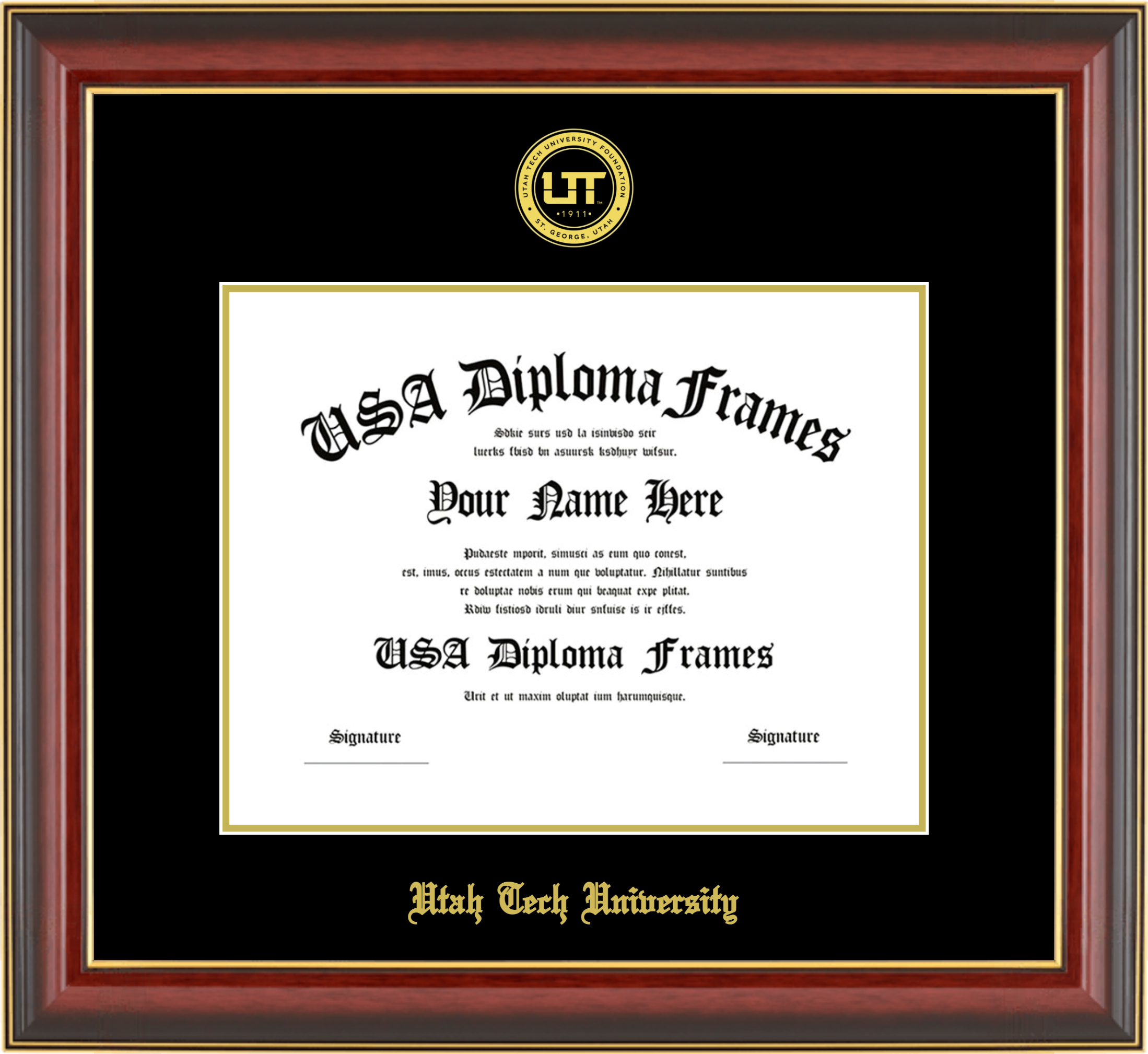 Utah Tech University Diploma Frame – Cherry Mahogany Gold Trim Glossy – Black and Gold Mat