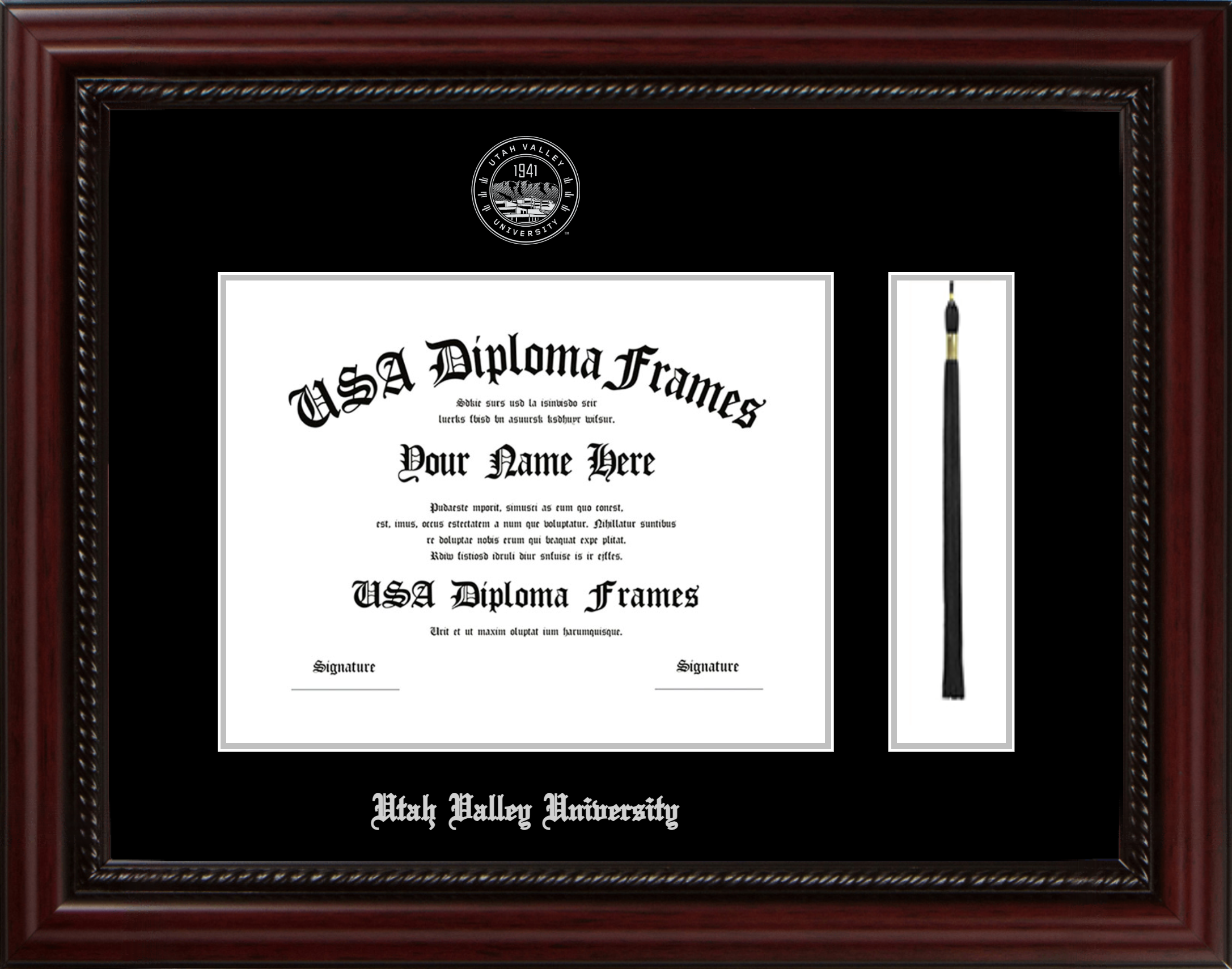 Utah Valley University Diploma Frame with Tassel – Executive Cherry Rope – Black and Silver Mat