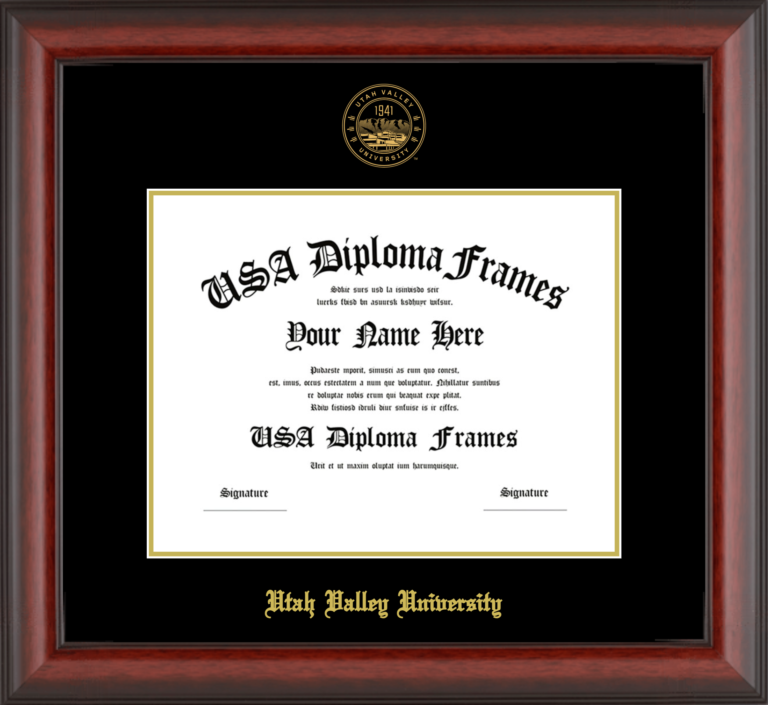 Want to explore more styles? Browse our full range of diploma frame layouts, or visit the Utah Valley University to view options available for your school. Looking for a fully personalized design? Try our custom Frame Builder and create a frame that’s uniquely yours.