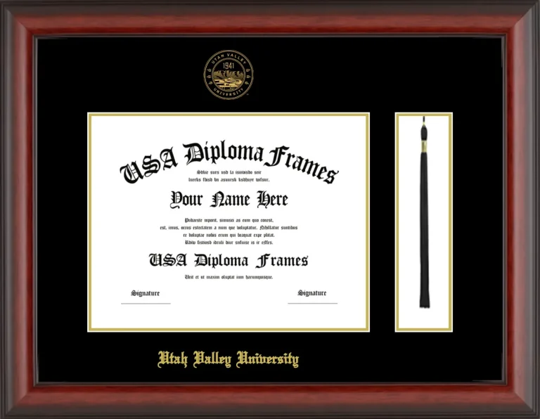 Want to explore more styles? Browse our full range of diploma frame layouts, or visit the Utah Valley University to view options available for your school. Looking for a fully personalized design? Try our custom Frame Builder and create a frame that’s uniquely yours.