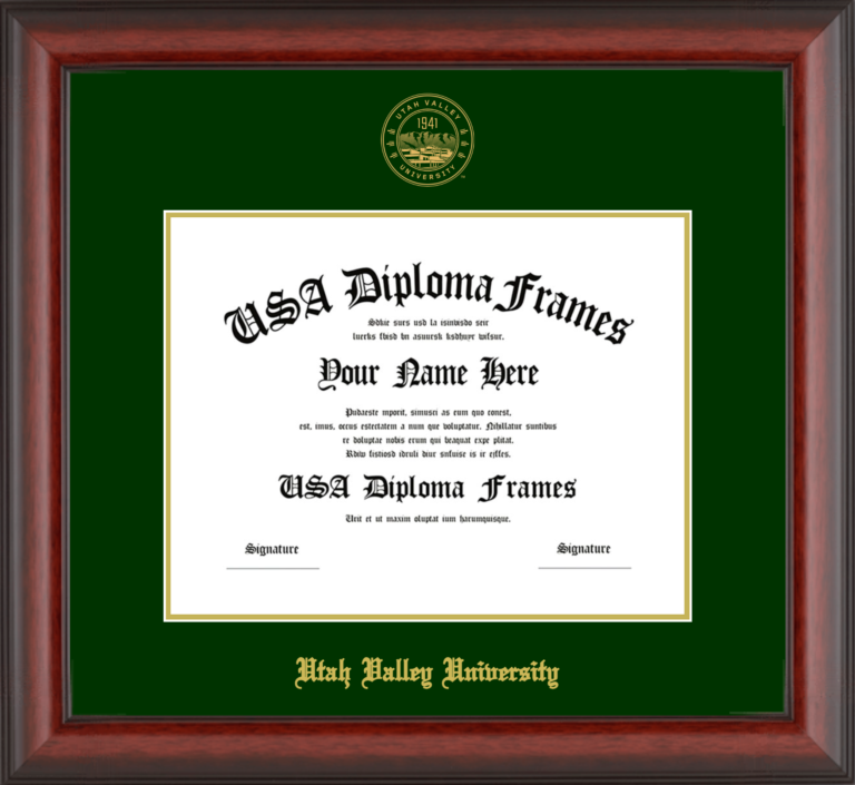 Want to explore more styles? Browse our full range of diploma frame layouts, or visit the Utah Valley University to view options available for your school. Looking for a fully personalized design? Try our custom Frame Builder and create a frame that’s uniquely yours.