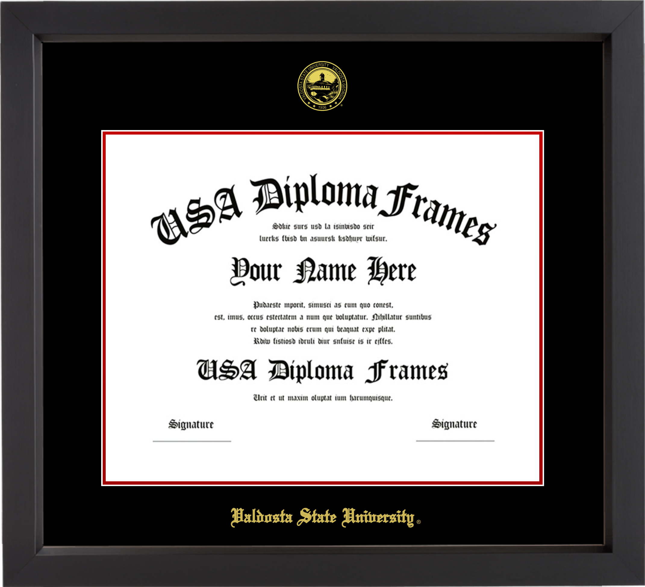 Valdosta State University – Single Horizontal Document ( Diploma ) – Black Matte – Black Mat – Red Accent Mat – With Seal(University Seal Gold) – With Gold Embossing (Valdosta State University)