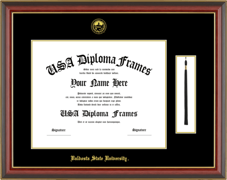 Want to explore more styles? Browse our full range of diploma frame layouts, or visit the Valdosta State University to view options available for your school. Looking for a fully personalized design? Try our custom Frame Builder and create a frame that’s uniquely yours.