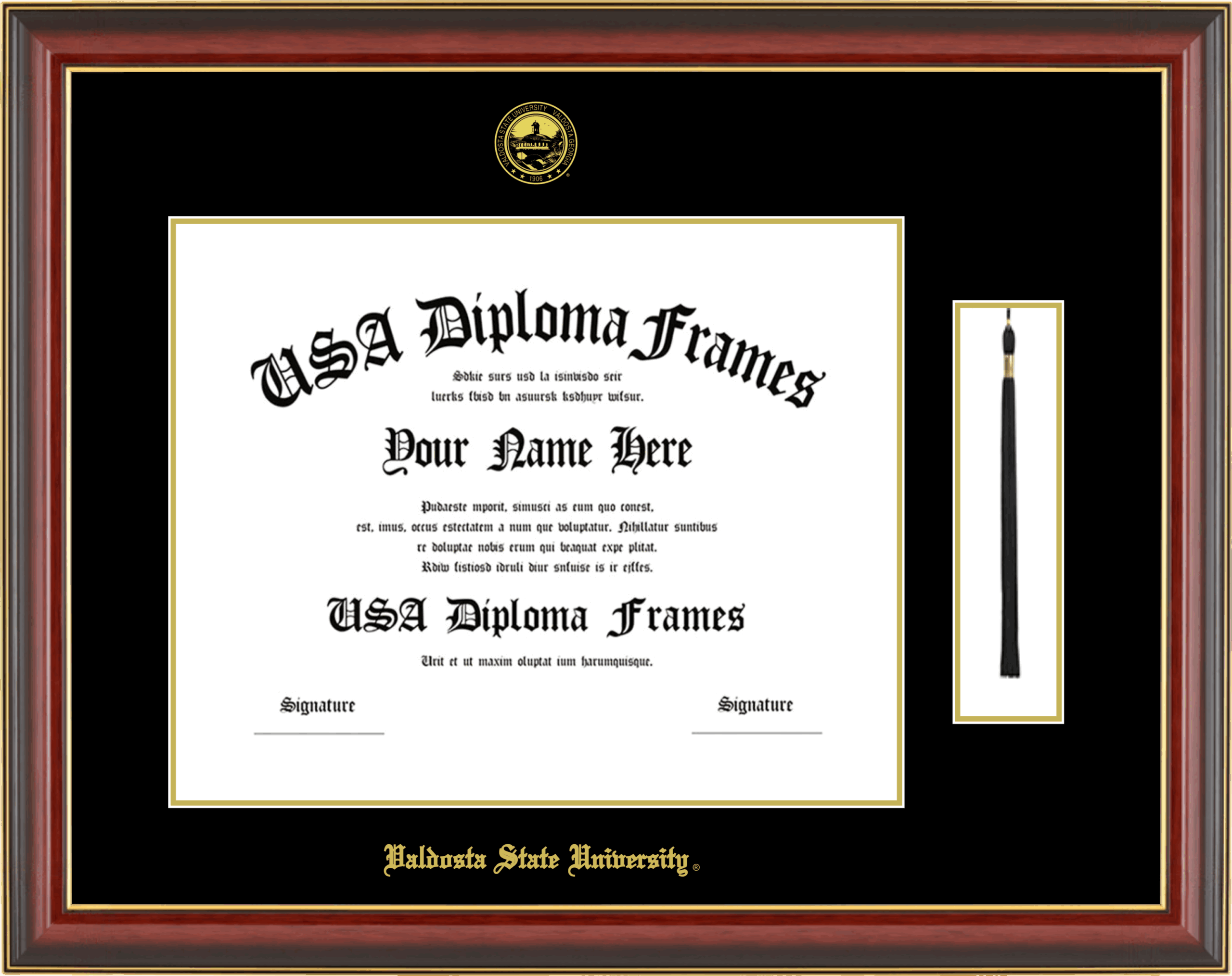 Valdosta State University – Single Horizontal Document ( Diploma ) – Cherry Mahogany Gold Trim Glossy – Black Mat – Gold Accent Mat – With Tassel(Default) – With Seal(University Seal Gold) – With Gold Embossing (Valdosta State University)