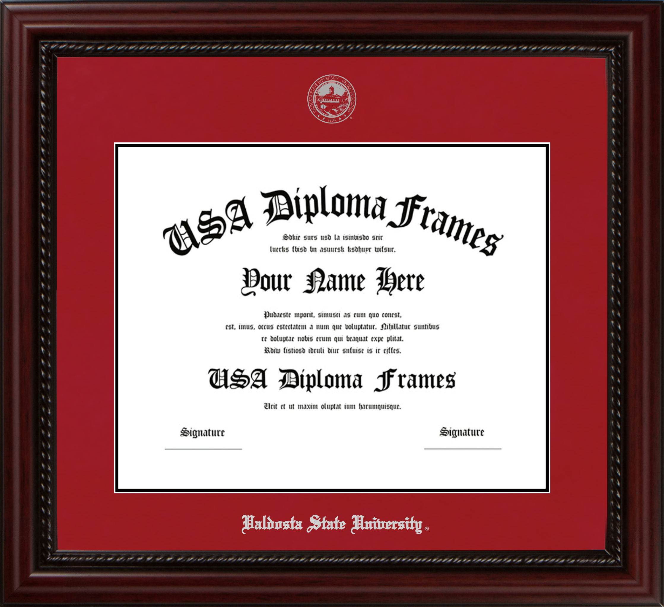 Valdosta State University – Single Horizontal Document ( Diploma ) – Executive Cherry Rope – Crimson Mat – Black Accent Mat – With Seal(University Seal Silver) – With Silver Embossing (Valdosta State University)