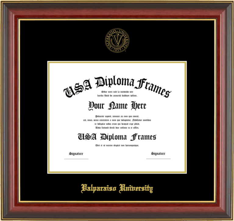 Want to explore more styles? Browse our full range of diploma frame layouts, or visit the Valparaiso University to view options available for your school. Looking for a fully personalized design? Try our custom Frame Builder and create a frame that’s uniquely yours.