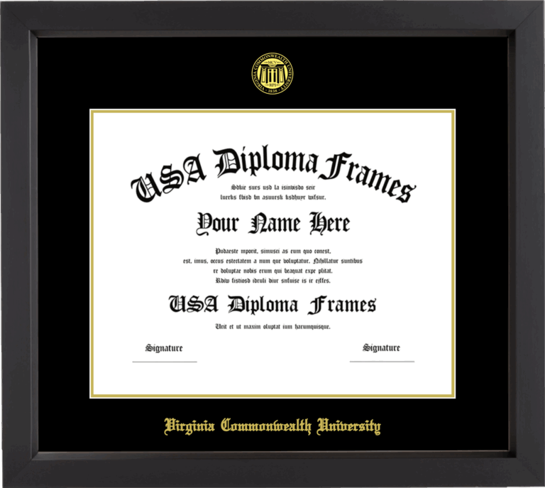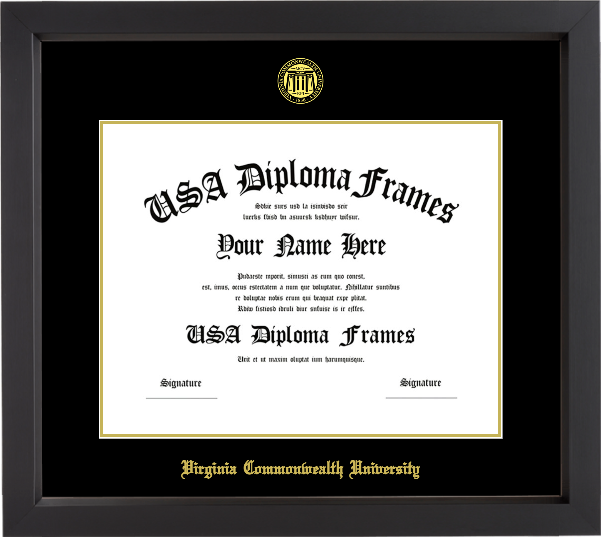Virginia Commonwealth University Diploma Frame – VCU – Black Matte – Black and Gold Mat