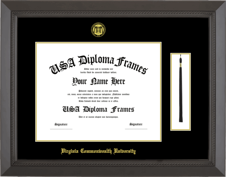 Virginia Commonwealth University Diploma Frame with Tassel – VCU – Black Rope – Black and Gold Mat